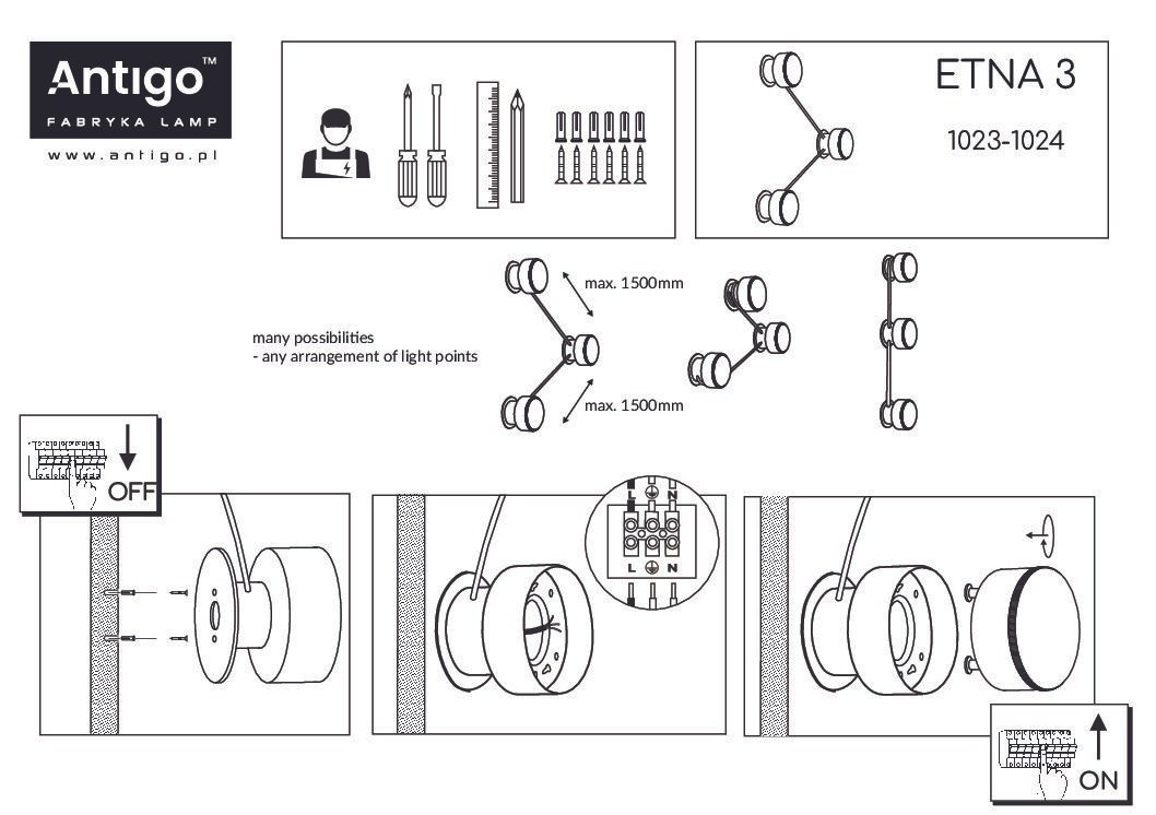Brosline Zidna lampa iz kolekcije Etna Bela boje izrađena od Čelik zaštita IP 20. 3 izvora svetlosti. Idealna je za moderno osvetljenje enterijera i pruža optimalno osvetljenje prostora.