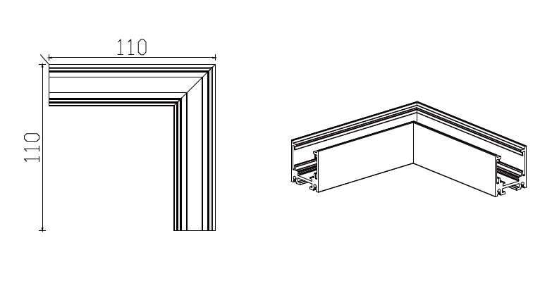 Mantra Magneto L konektor nadgradni u crnoj boji, od aluminijuma za magnetnu šinsku rasvetu, ugao 90°. Dimenzije 11x11x3cm, sa IP20 zaštitom za unutrašnju upotrebu. Idealan za ugaone instalacije u prodavnicama i galerijama.