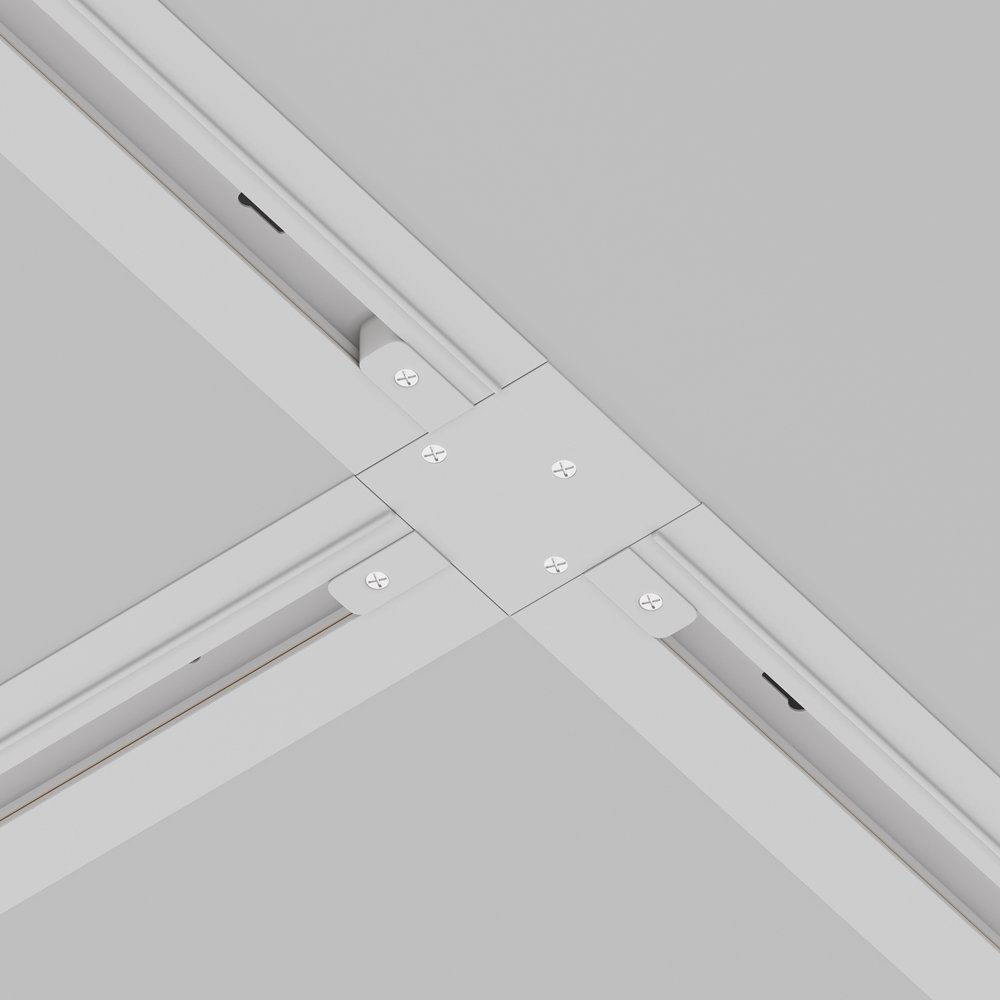 Maytoni Unity T-konektor u beloj boji za ugradni šinski sistem. Aluminijumska konstrukcija za fleksibilno povezivanje šina u T-obliku.
